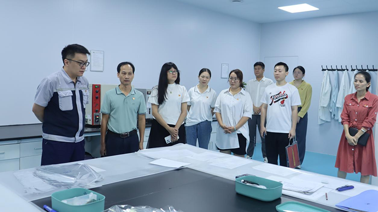 簽約儀式后,泉莊街道黨工委書(shū)記陳龍盛、人民社區(qū)黨委書(shū)記潘青一行6人依次參觀了我司生產(chǎn)車間、實(shí)驗(yàn)室、勞模工作室、產(chǎn)品展示大廳,并聽(tīng)取了詳細(xì)的講解。