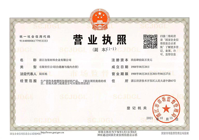 湛江包裝材料企業(yè)有限公司成立于1988年,由中外合資、國有控股企業(yè),是湛江市國資委管理下的國企。公司占地面積26700平方米,擁有兩條的德國布魯克納雙向拉伸聚丙烯(BOPP)薄膜生產(chǎn)線及分切設(shè)備11臺,生產(chǎn)能力達12000噸/年。